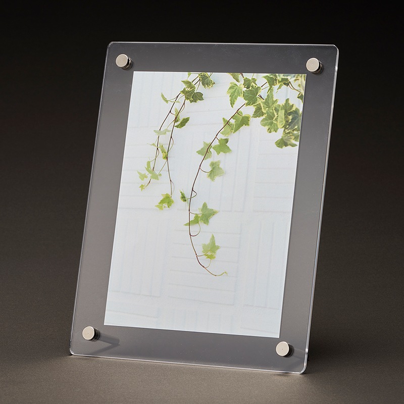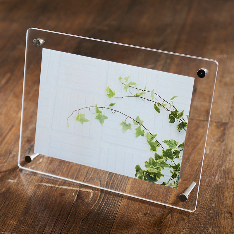 2層アクリル仕様のしっかりとしたつくりで、透明感が高くシンプルなデザインがインテリアとしてもお洒落なフォトフレーム。